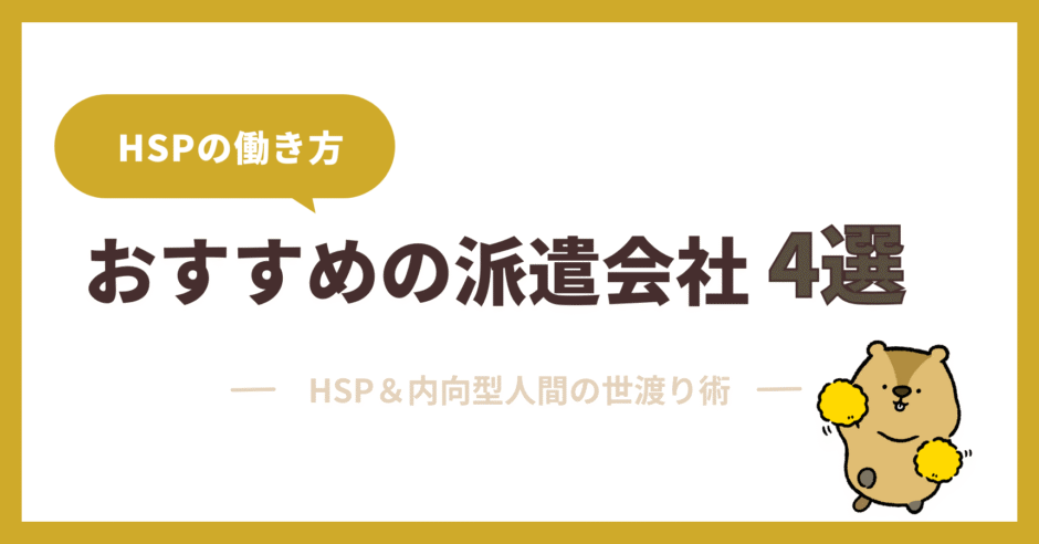 この記事では、HSPに派遣がおすすめな理由や働きやすい職場の探し方、さらにHSPに向いている派遣会社4選までわかりやすく紹介します。