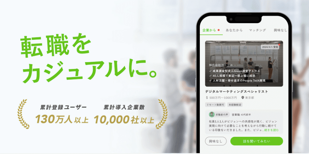 職種や勤務地、年収などの条件を検索し、自分のペースで応募できるのが特徴。